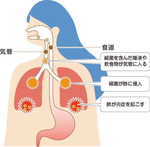 高齢になると食べ物を飲み込む機能が低下し、誤嚥性肺炎になりやすく年間4万人の命が奪われています(死因7位)。誤嚥性肺炎は、口の中の細菌を唾液と一緒に誤嚥して起こることが多いため、何より口の中を清潔にすること『口腔ケ ア』がとても重要になります。