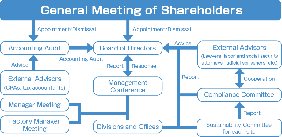 We have set up a Compliance Committee to build, maintain, and manage our compliance system. We will build a framework to incorporate the opinions of employees and collect opinions from outside experts, as appropriate, aiming for speedy decision-making and sound business management.