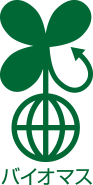 バイオマス材料(植物性由来樹 脂)を含んでいれば取得できる マークです。バイオマス材料 10%以上で左記のマーク表示ができ、バイオマス材料が5%刻みで数値が上がっていきます。