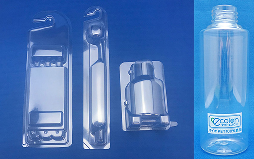 バイオマス原料の使用を積極的に推進しており、歯ブラシのパッケージ(ブリスター)に使われている材料を、全量バイオマス原料(バイオPET)へと切替えをすすめています。また食品やシャンプーボトルにも、バイオマス原料(バイオPE)を使用し、用途を広げています。