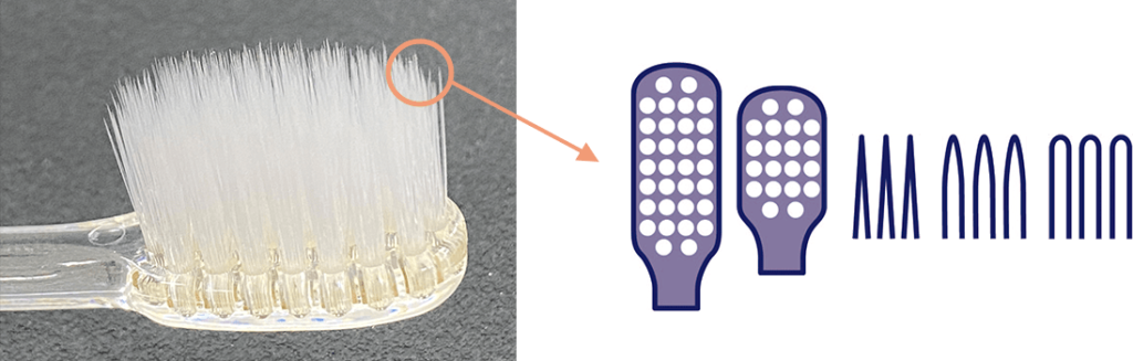 材質、毛先形状、植毛配列の違いによる磨きごこち、刷掃性の調査、研究を行っています。