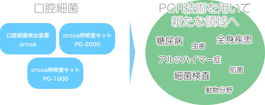 当社は2013年からいち早くこの分野に進出し、産学連携に取り組み、PCRを原理とした口腔細菌の検査システムの開発に着手しました。